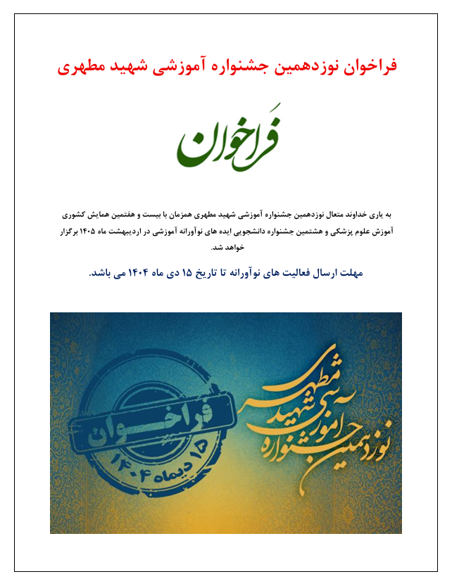 فراخوان نوزدهمین جشنواره شهید مطهری