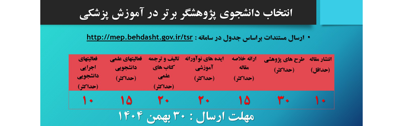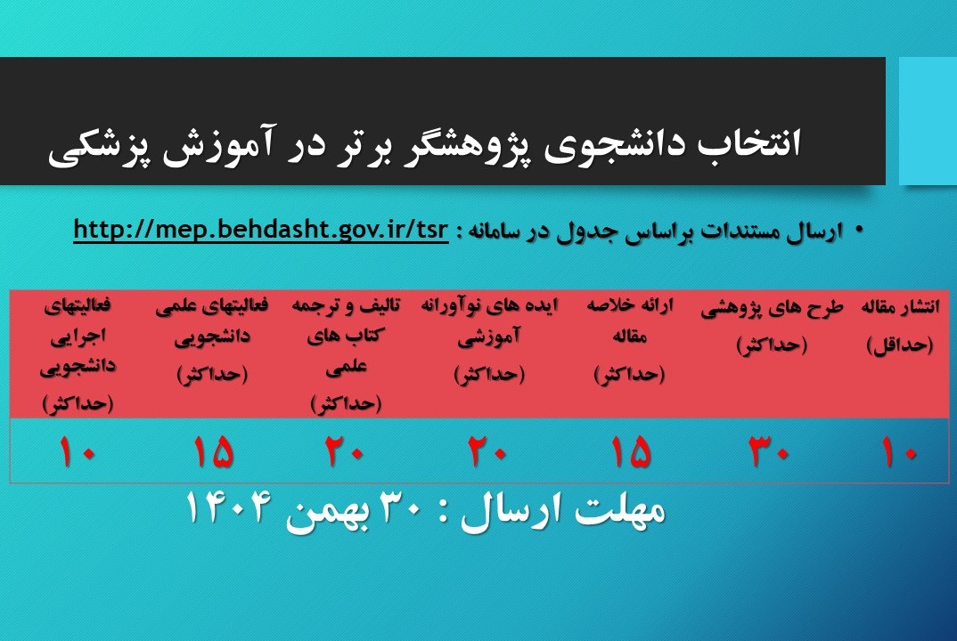 انتخاب دانشجوی پژوهشگر برتر در آموزش پزشکی