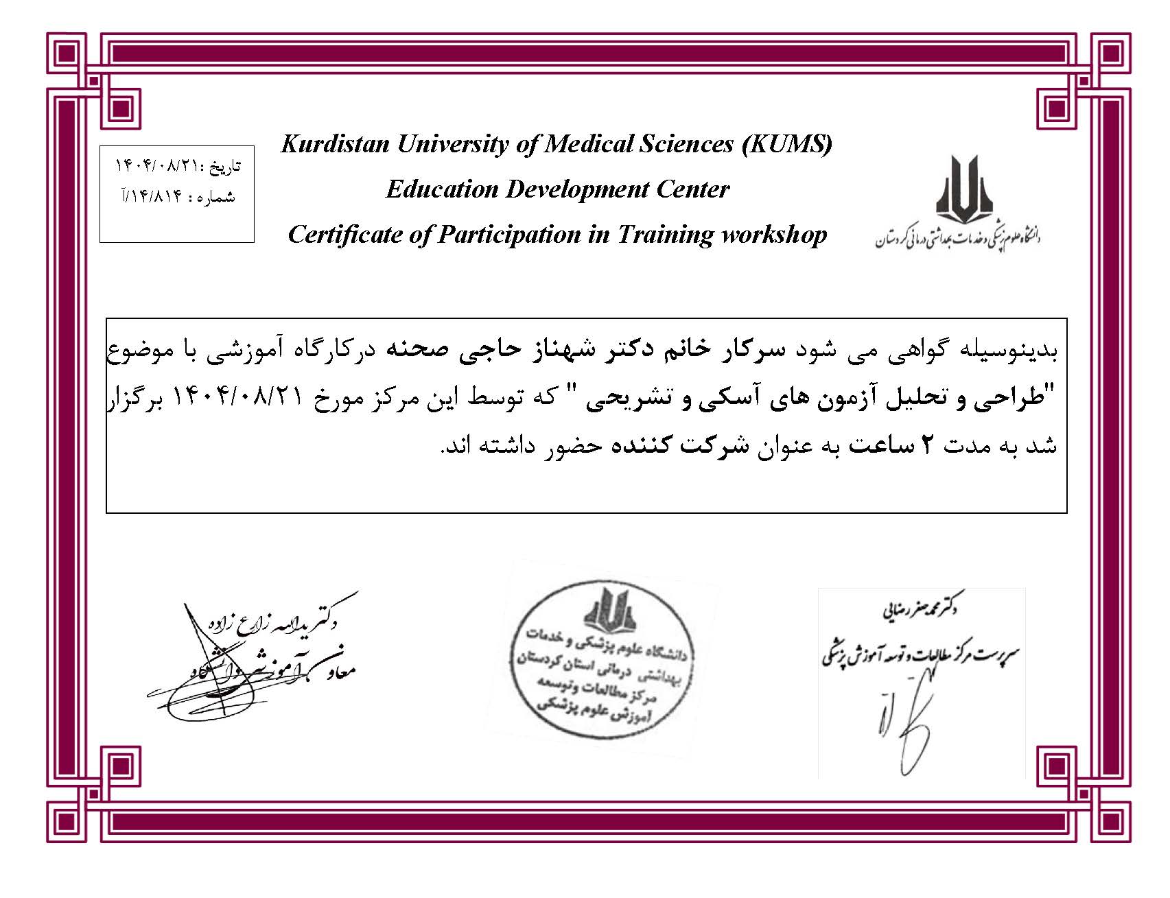 سرکار خانم دکتر شهناز حاجی صحنه