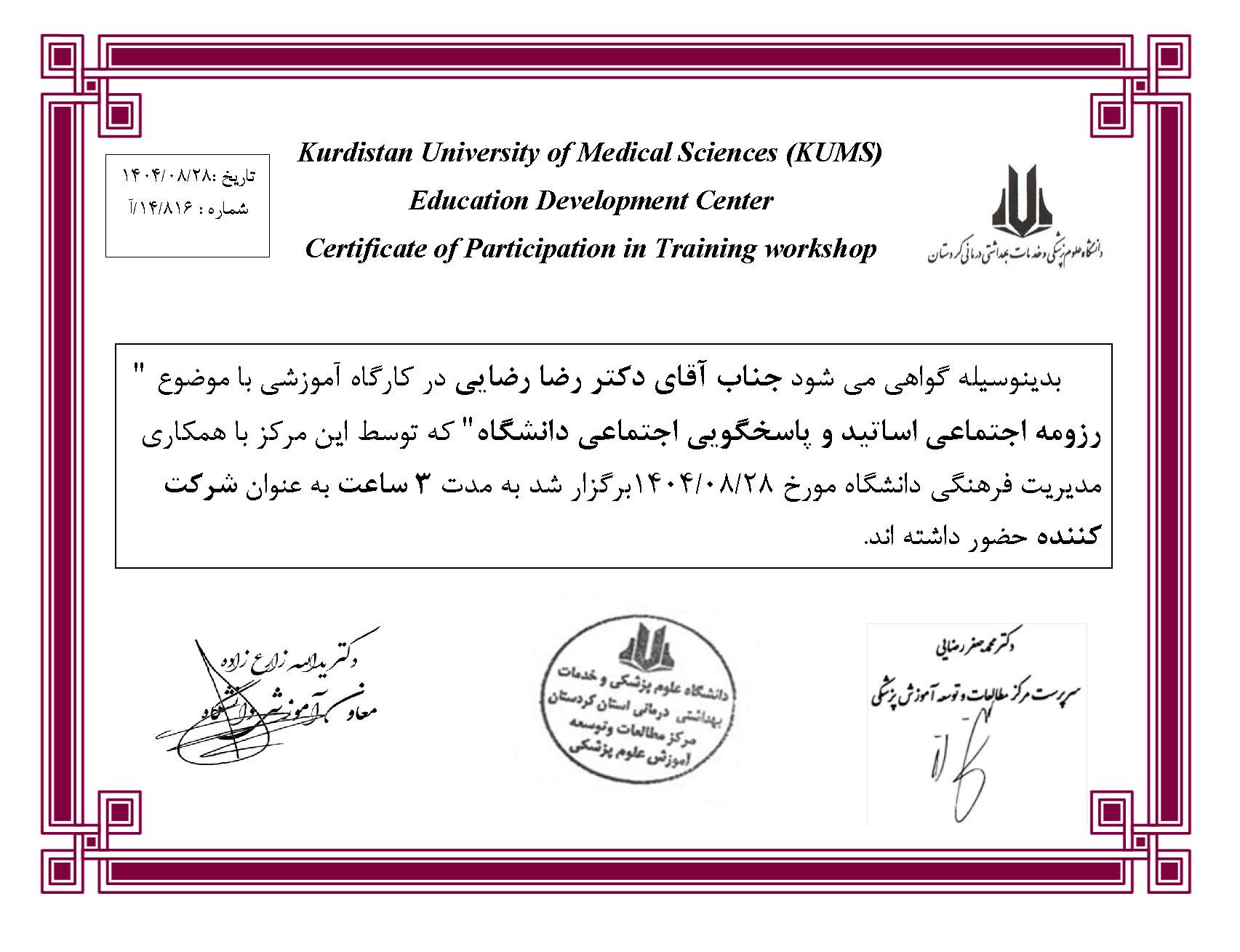 جناب آقای دکتر رضا رضایی