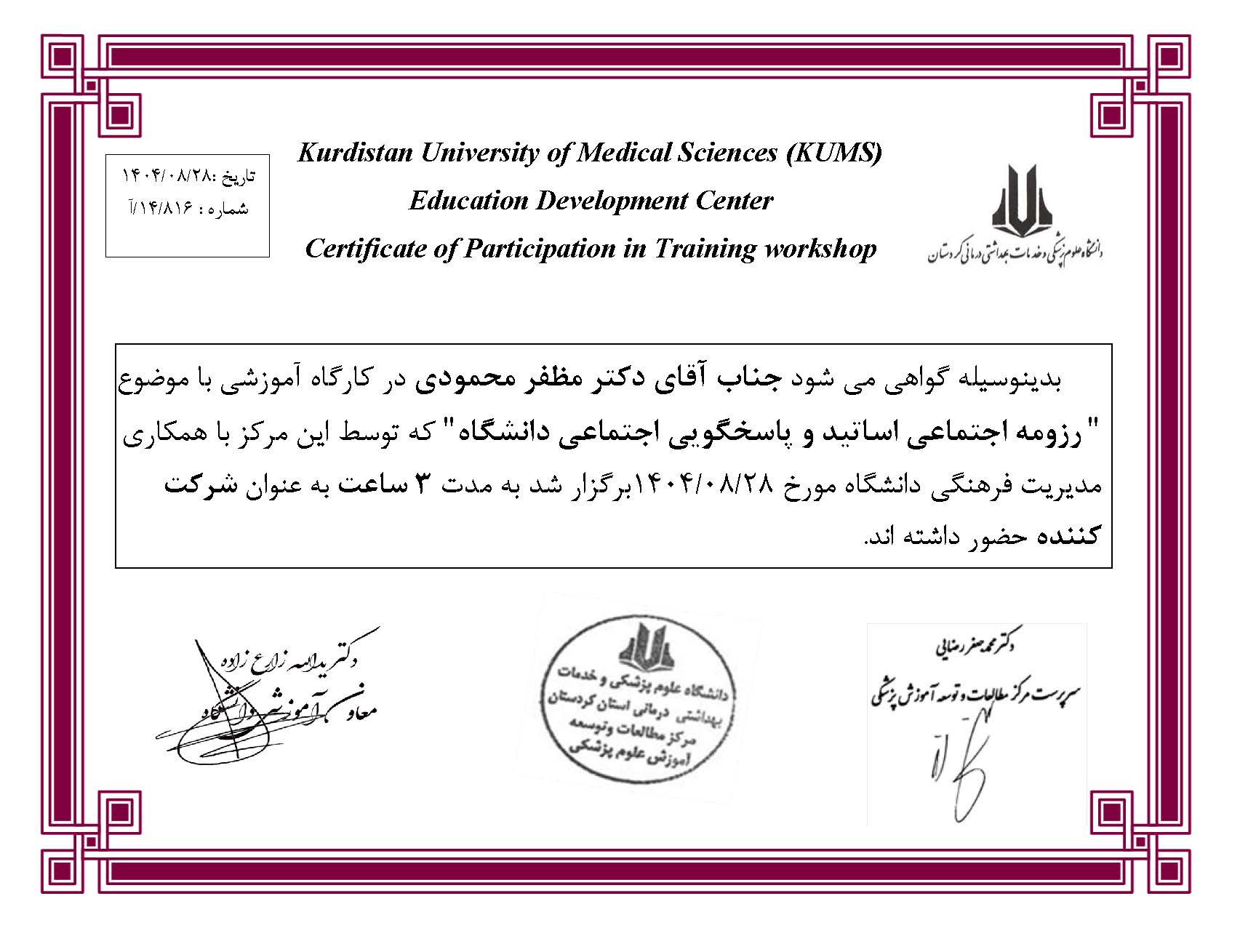 جناب آقای دکتر مظفر محمودی