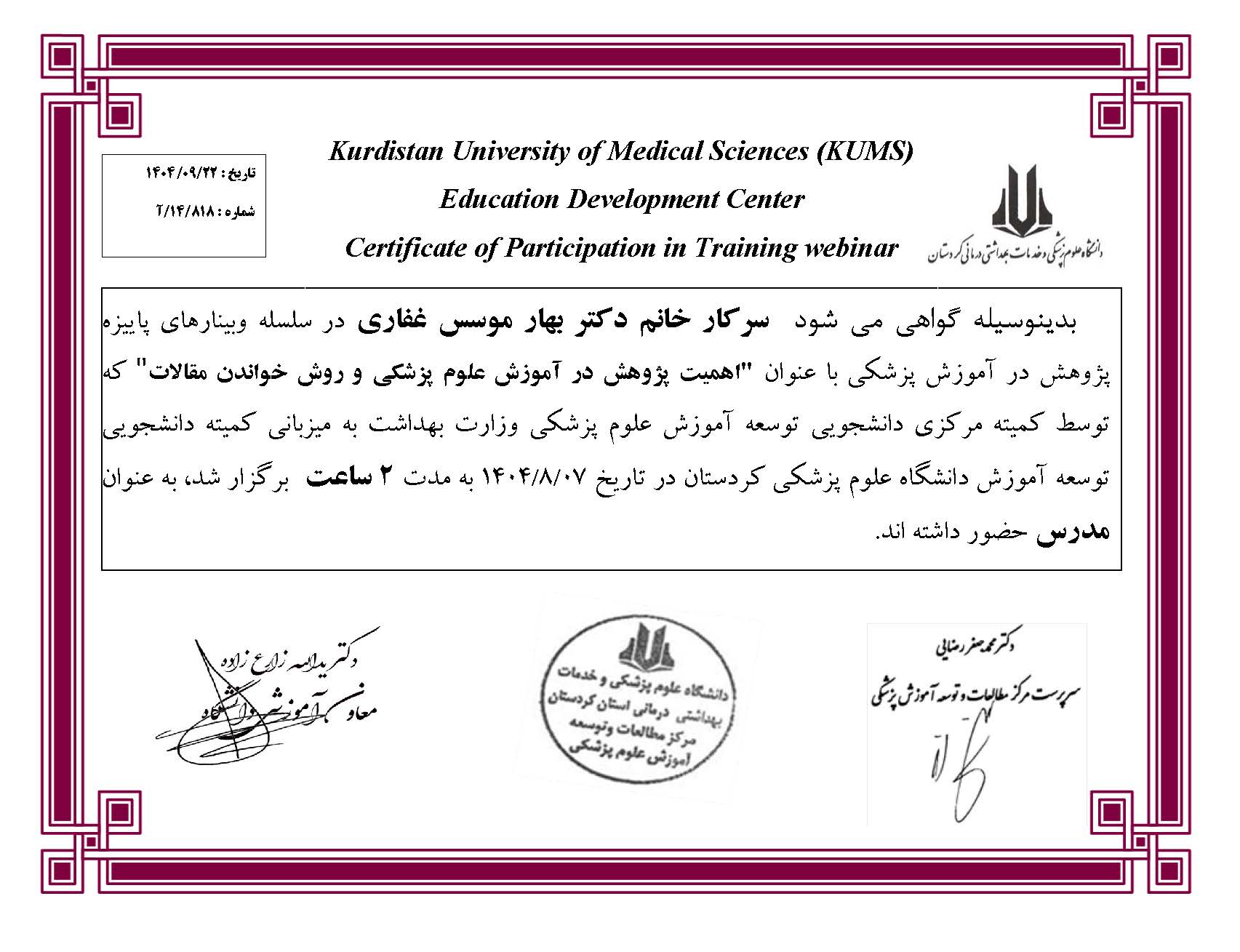 سرکار خانم دکتر بهار موسس غفاری
