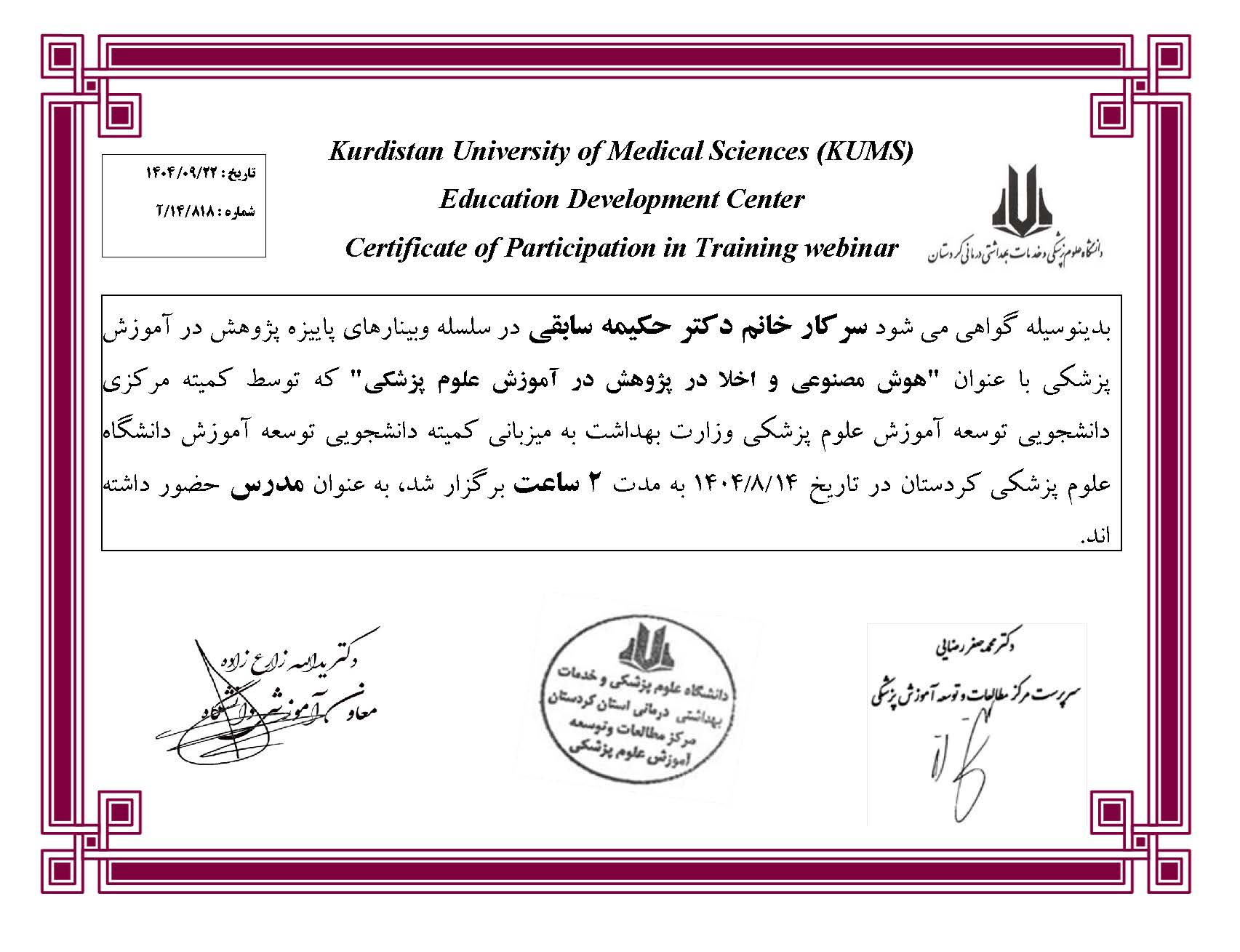 سرکار خانم دکتر حکیمه سابقی