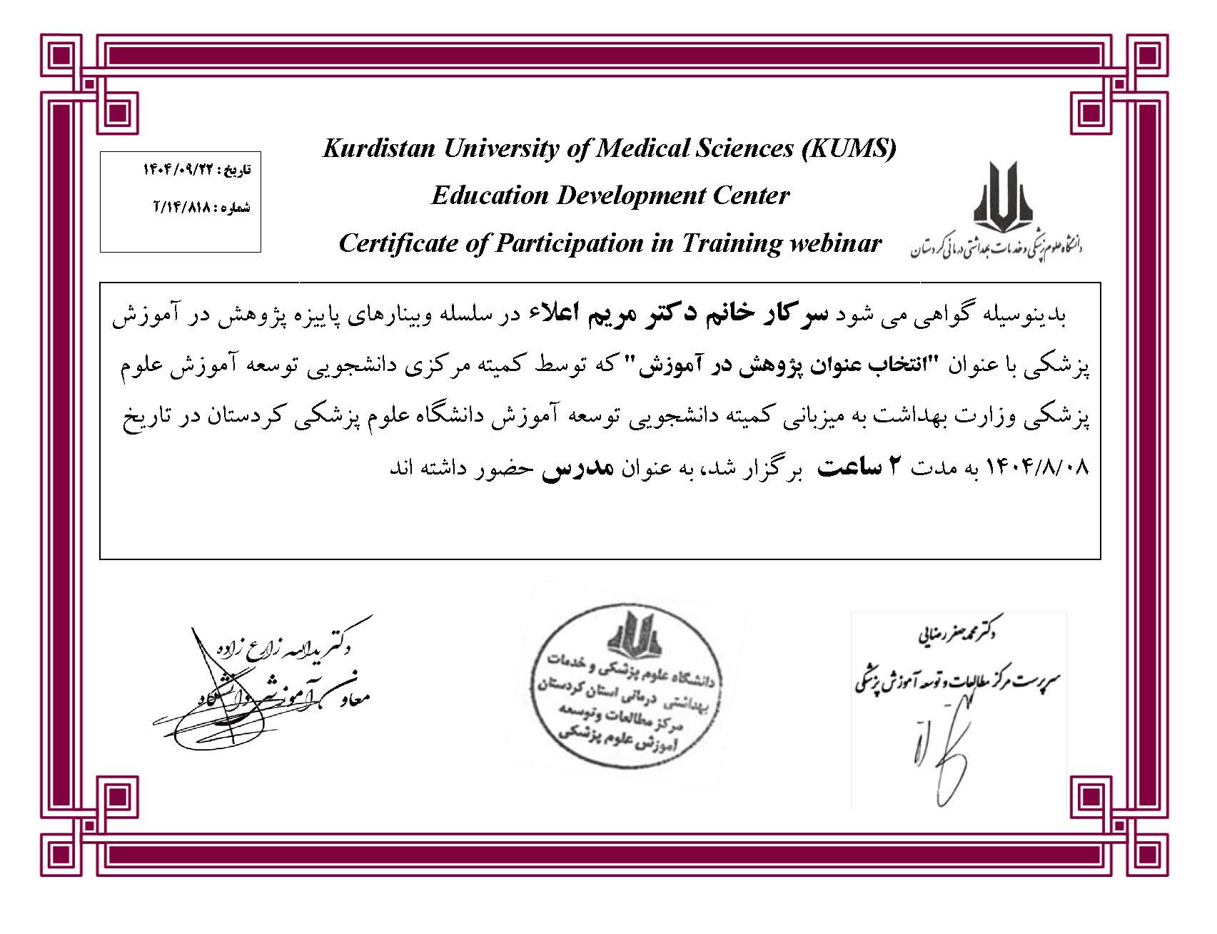 سرکار خانم دکتر مریم اعلا