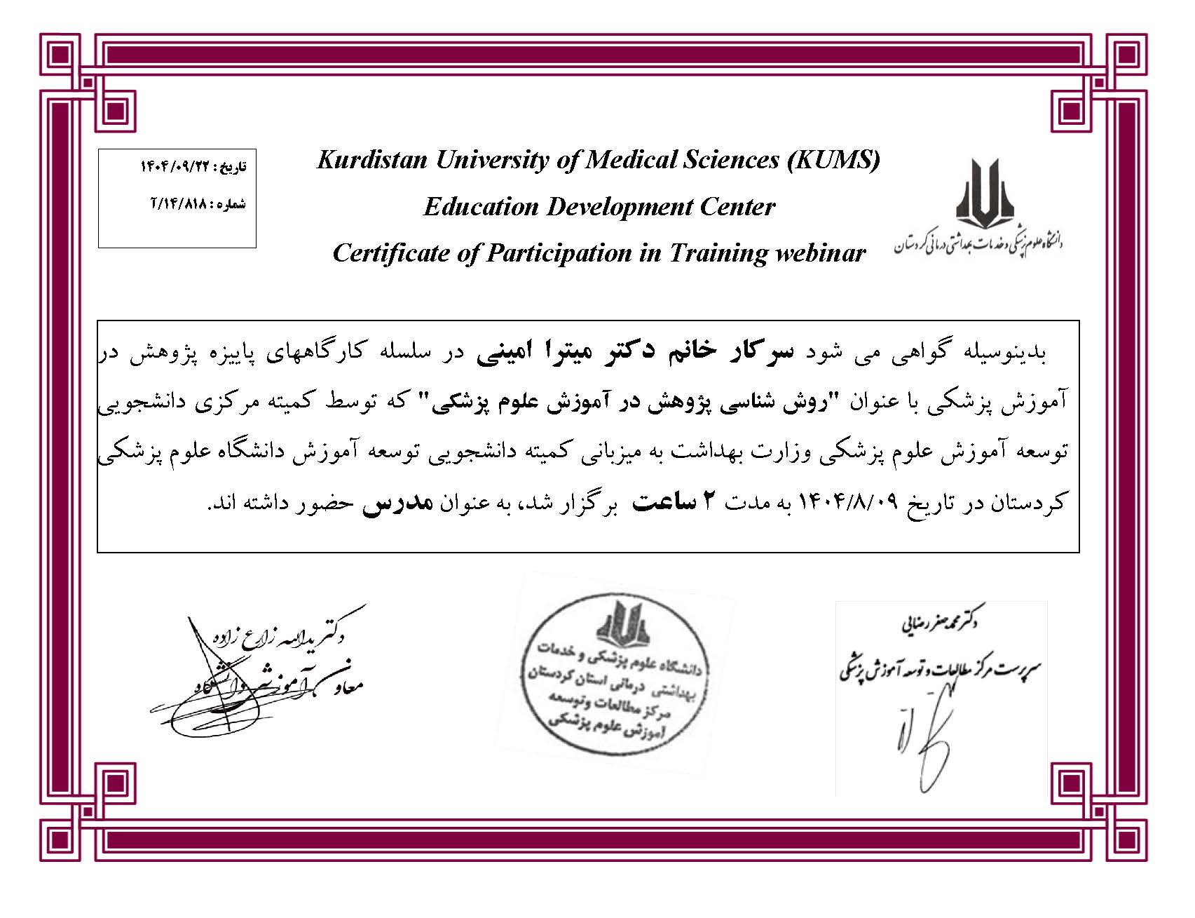 سرکار خانم دکتر میترا امینی