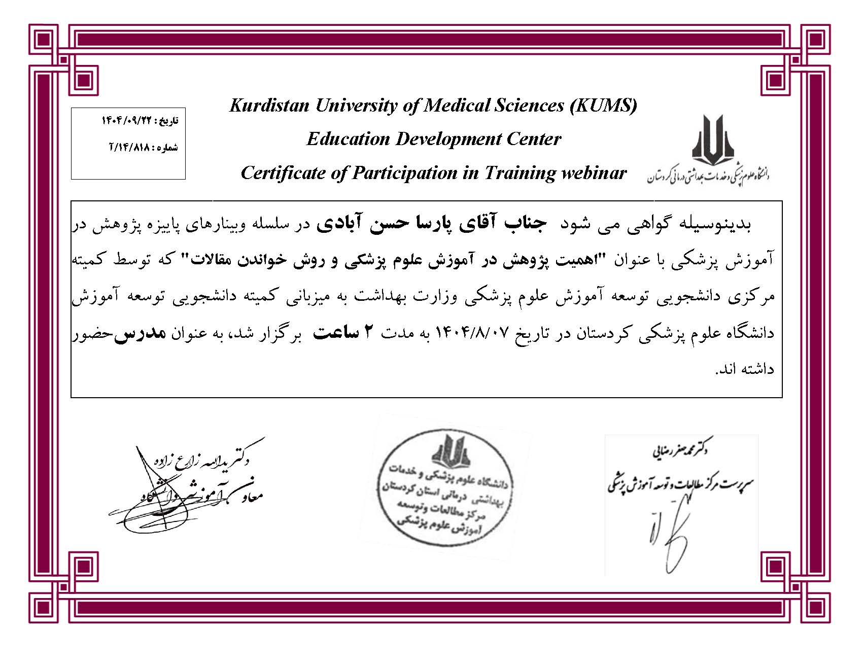 جناب آقای پارسا حسن آبادی