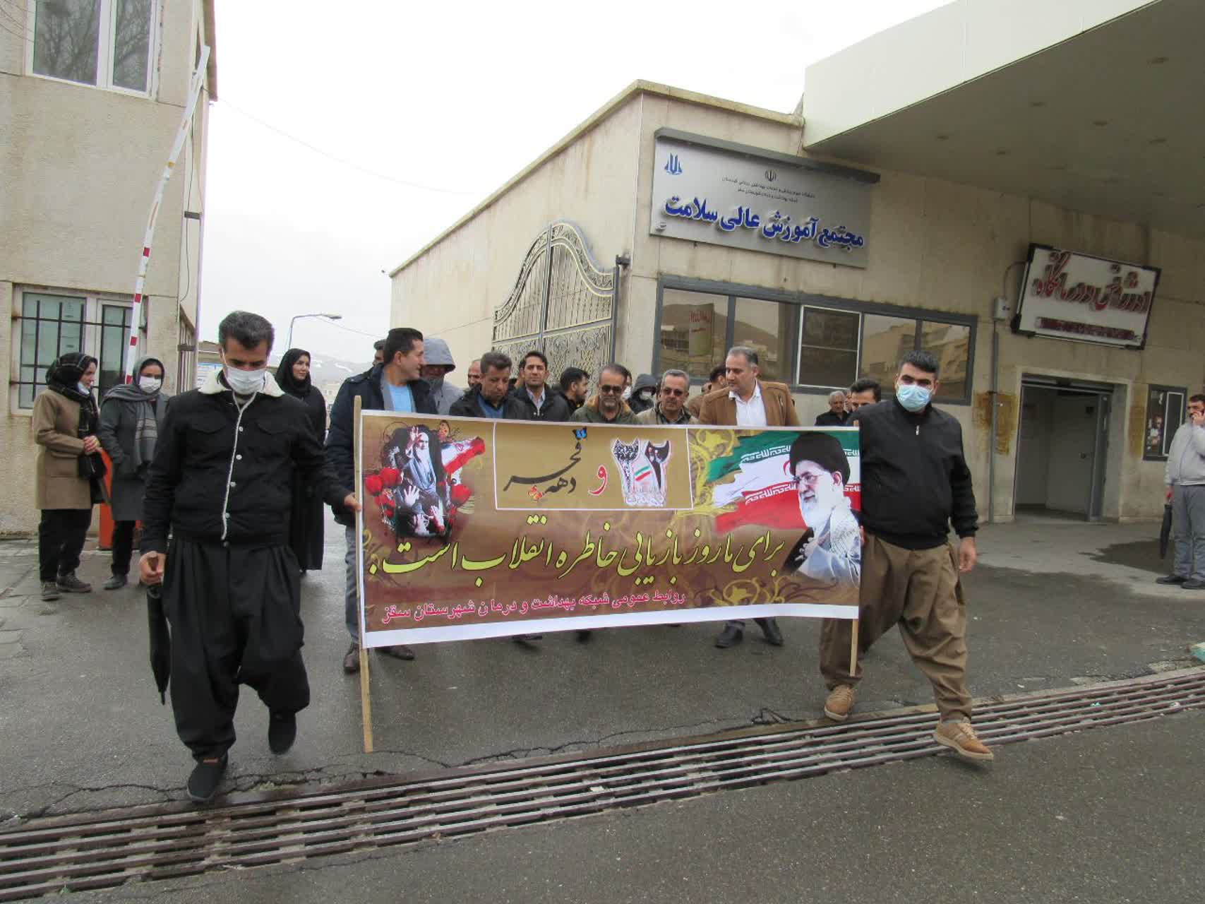 راهپیمایی مدیر، مسئولان و کارکنان عرصه سلامت و مردم غیور و ولایت مدار شهرستان سقزدر یوم الله ۲۲ بهمن ماه 1404همزمان با سراسر کشور با شکوه خاصی برگزار گردید.