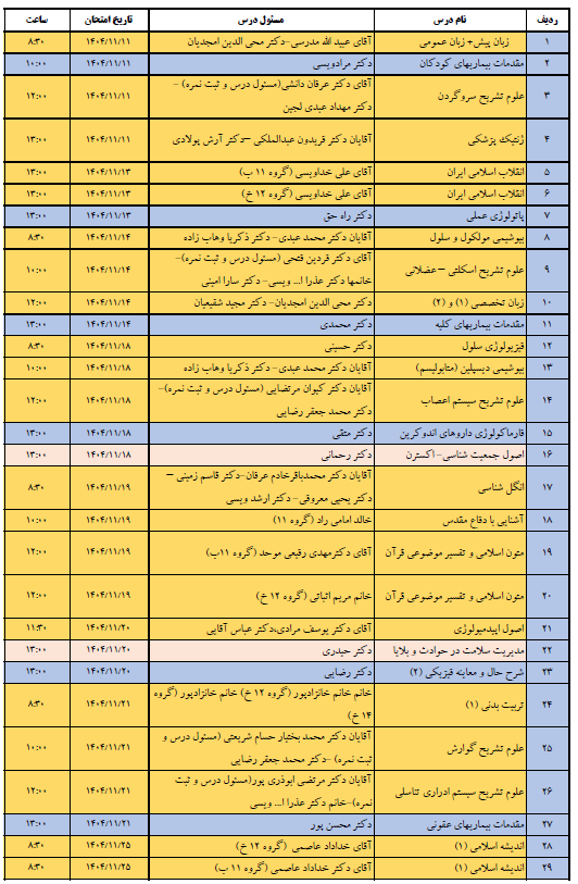 امتحانات پایان ترم دانشکده پزشکی