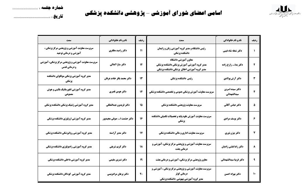 6- بررسی و تصویب نهایی پایان نامه های دانشجویان پزشکی عمومی و تخصصی در سقف مصوب دانشکده